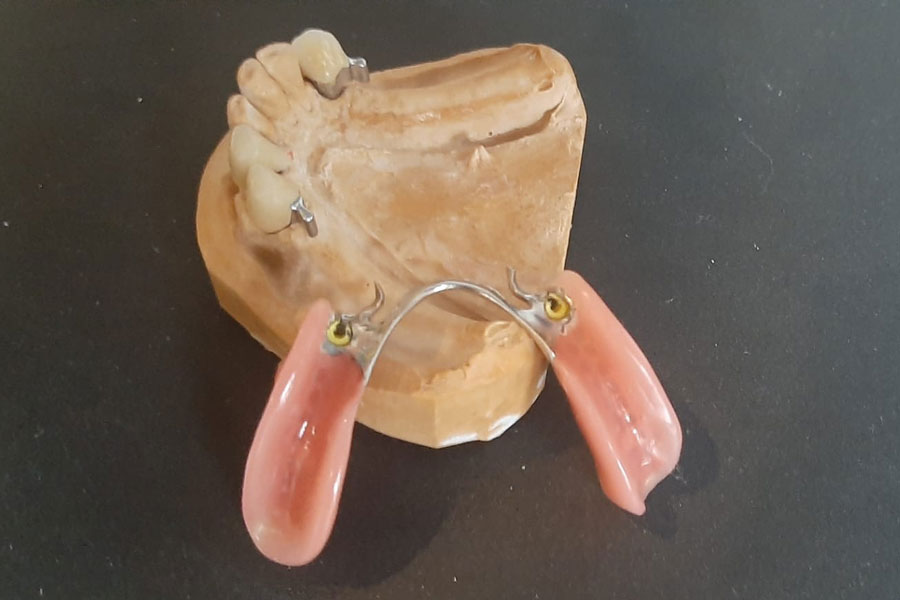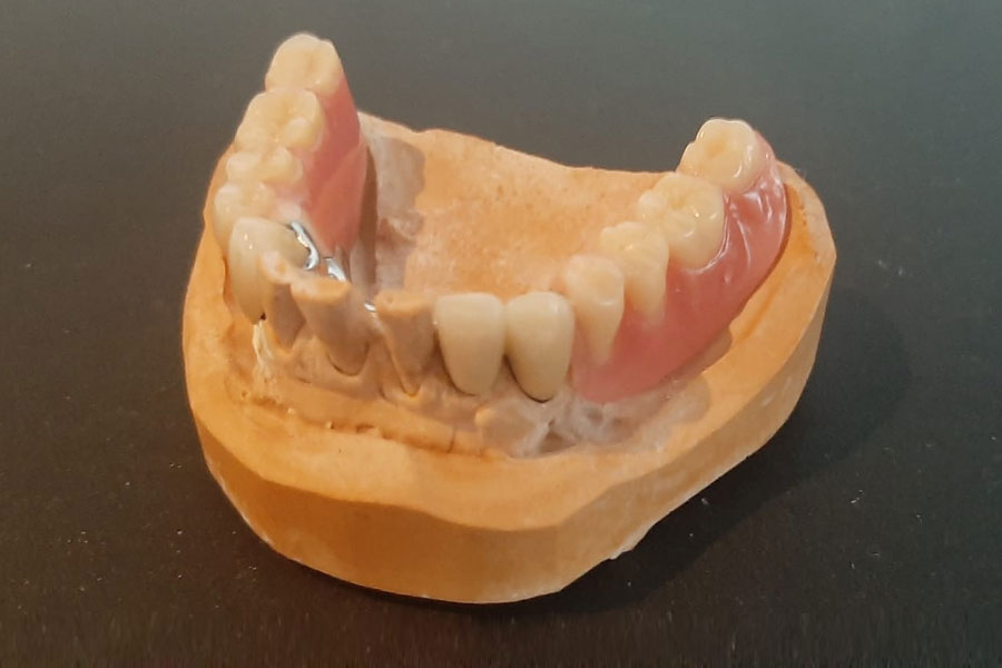 Der abnehmbare Anteil ist bei Laien als „Prothese“ bekannt. Er besteht aus einem tragenden Element aus hochwertigem Dentalstahl, den Prothesensätteln aus Kunststoff, den künstlichen Zähnen und schließlich den feinmechanischen Verbindungselementen, welche die Prothese unsichtbar und sicher an den Ankerzähnen in Position halten. Die Haltekraft der feinmechanischen Elemente ist so eingestellt, dass die Patienten, zum Zwecke einer komfortablen Reinigung, diese selbstständig aus dem Mund entfernen und wieder eingliedern können.