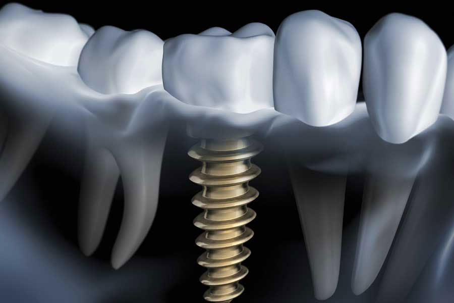 Ein Zahnimplantat ist ein Fremdkörper – meist in Form einer Schraube oder eines Zylinders (bestehend aus Titan oder seltener aus Zirkon) – der in den Kieferknochen eingesetzt wird und somit als künstliche Zahnwurzel dient.